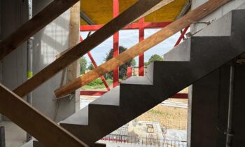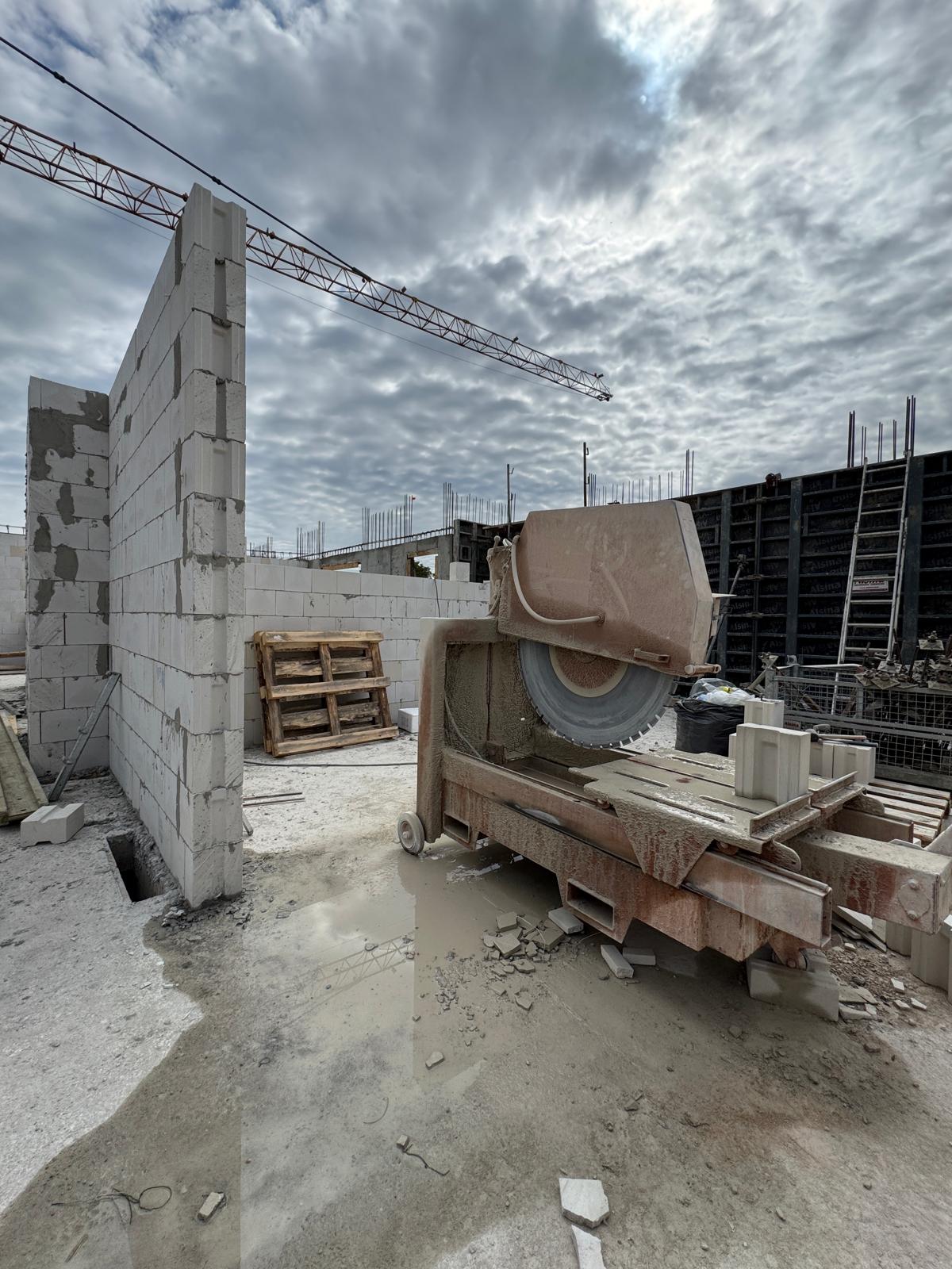 Aktualnie trwa zbrojenie, szalowanie i betonowanie ścian trzeciego piętra oraz montaż stropu nad tą kondygnacją. Równocześnie murowane są ściany działowe na pierwszym piętrze, a w garażu prowadzone jest frezowanie odwodnień liniowych. Na parterze trwają prace sanitarne, natomiast na pierwszym piętrze – elektryczne.