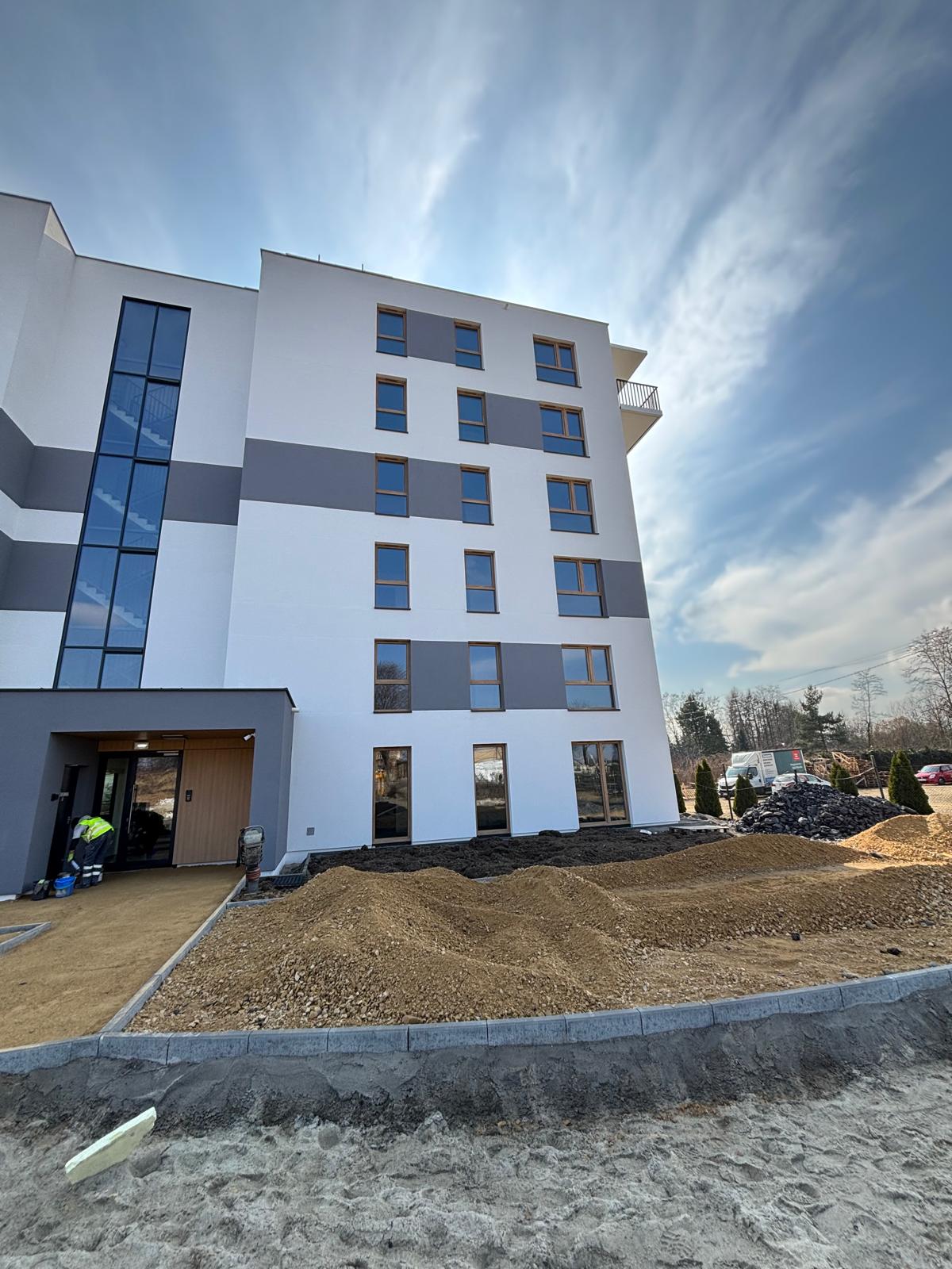 Udostępniamy galerię zdjęć z ostatniego etapu Apartamentów Zasole, przed przekazaniem budynku i mieszkań do Państwa dyspozycji. Obecny etap prac budowlanych, polega na zagospodarowania przestrzeni wokół budynku. Termin ukończenia budynku zostaje bez zmian, przekazania mieszkań planowane są na drugą połowę maja. Zachęcamy do zapoznania się z galerią zdjęć.
