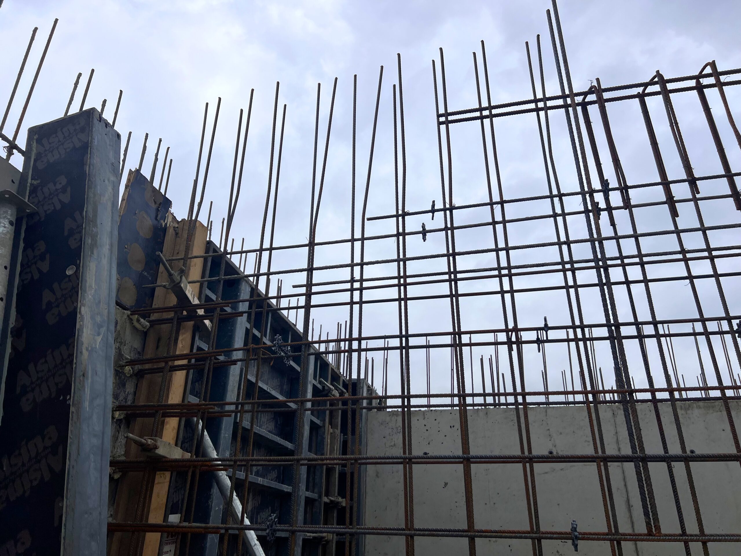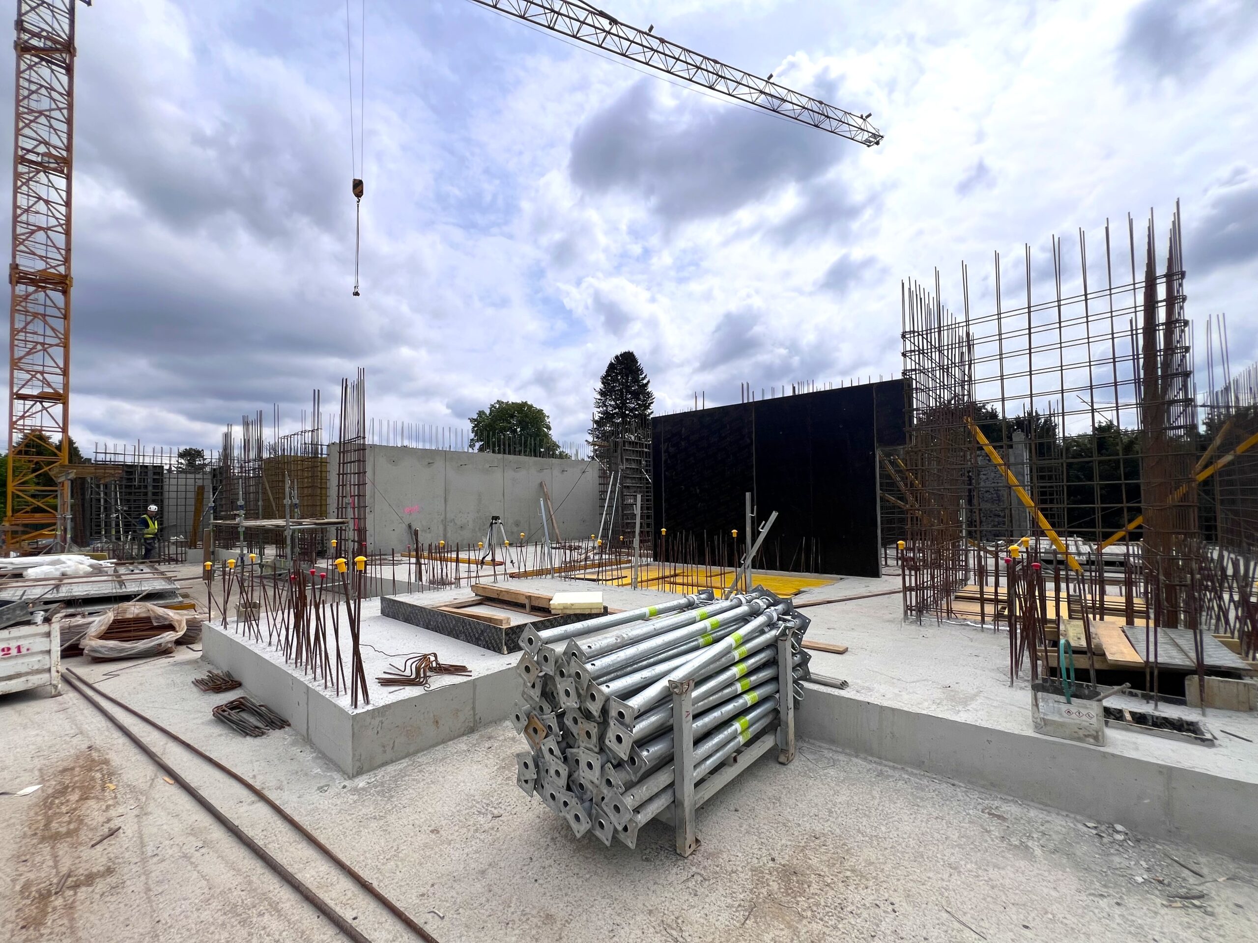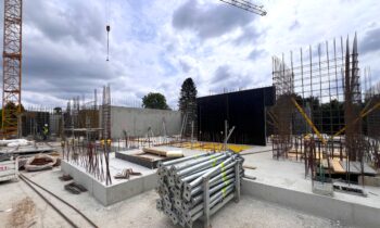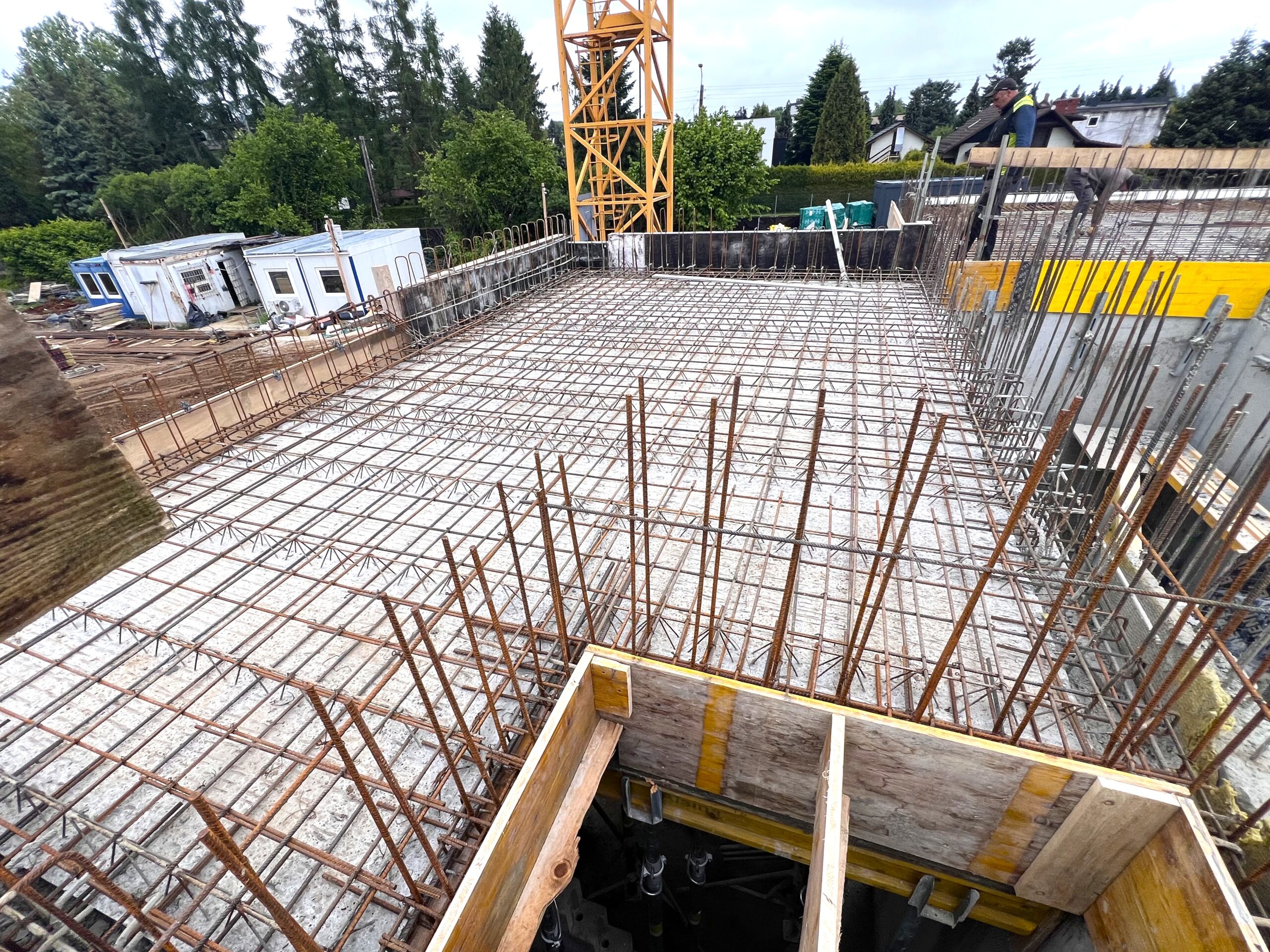 Betonowanie stropu garażu zostało ukończone, a betonowanie ścian parteru jest bardzo sprawnie prowadzone i znajduje się już na etapie końcowym. Rozpoczęto również betonowanie stropu nad parterem. Prace przebiegają sprawnie, a budynek „rośnie w oczach” dzięki profesjonalizmowi osób zaangażowanych w jego realizację.